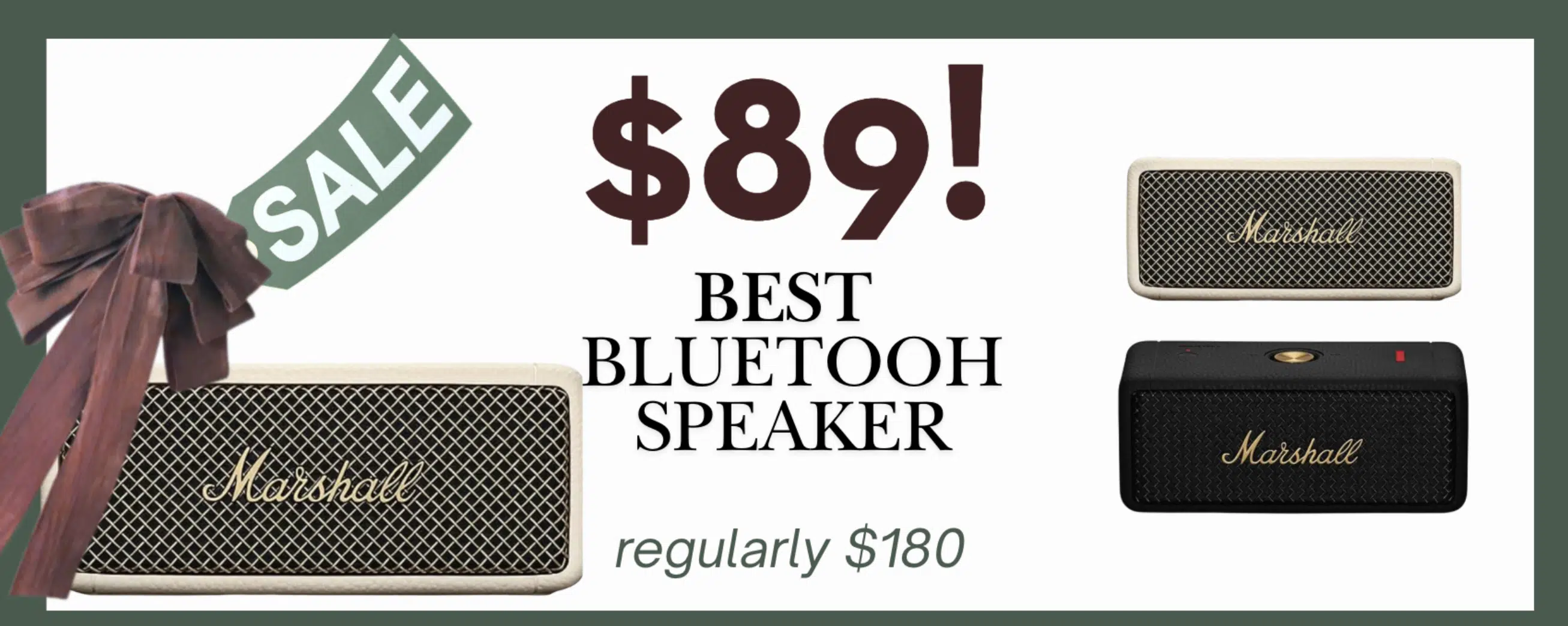 - Marshall Speaker: best price of the year, I have it in cream. Ours is five years old, and we still use it every time we host—with a playlist running in the background.
