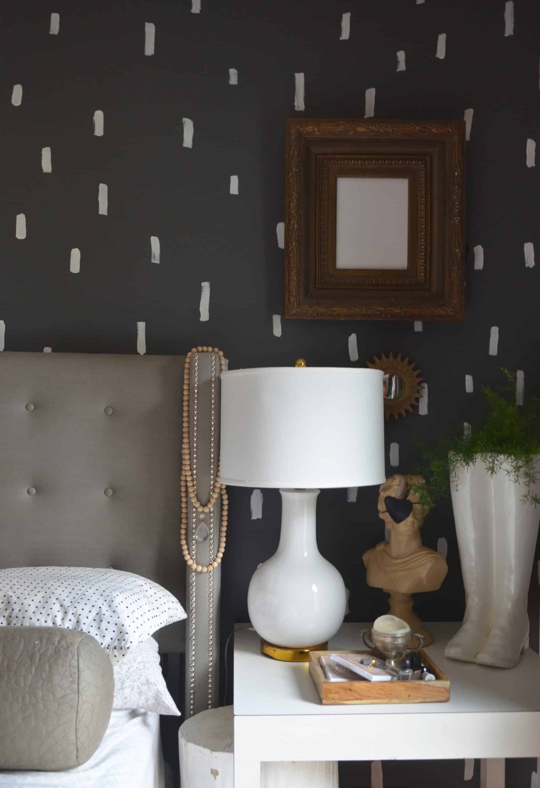 It was just the playful feel I wanted, it filled the space, and I didn’t have to find the perfect object to hang over our bed. There are still a million things I’d do if I had all the time and money in the world, like paint the cabinet a non-yellowy color and try to make the stuff on the walls on each side of the bed more balanced, but the dashes put all of that in perspective and suddenly those things don’t matter as much because oh my gosh, we have dashes on the wall!