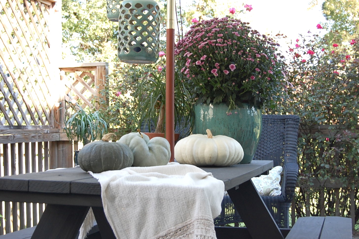 But it wasn’t until I was a freshman in high school that our family got our first picnic table. In my fourteen-year-old head, picnic tables were for rich people. So I figured that’s why we didn’t have one. So yes, even in college I knew that one day, I would have a picnic table too. I can vividly remember thinking that I might even *gasp* put my own picnic table inside one day.