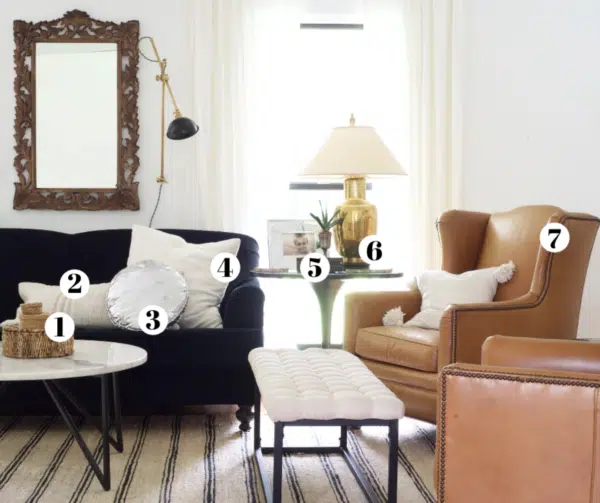 A few months ago we found this gorgeous pair of leather chairs (#7 in the top photo). They’re five or so years old, originally around $3000 each and we paid $800 a piece.