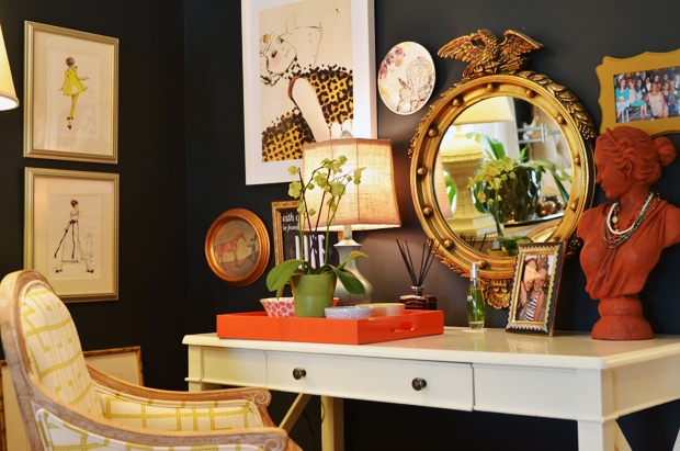 But upon more contemplation, I threw it all out the window for passion. Let the bathroom or the guest room be soothing. This room should be a little spicy and evoke love and beauty. “